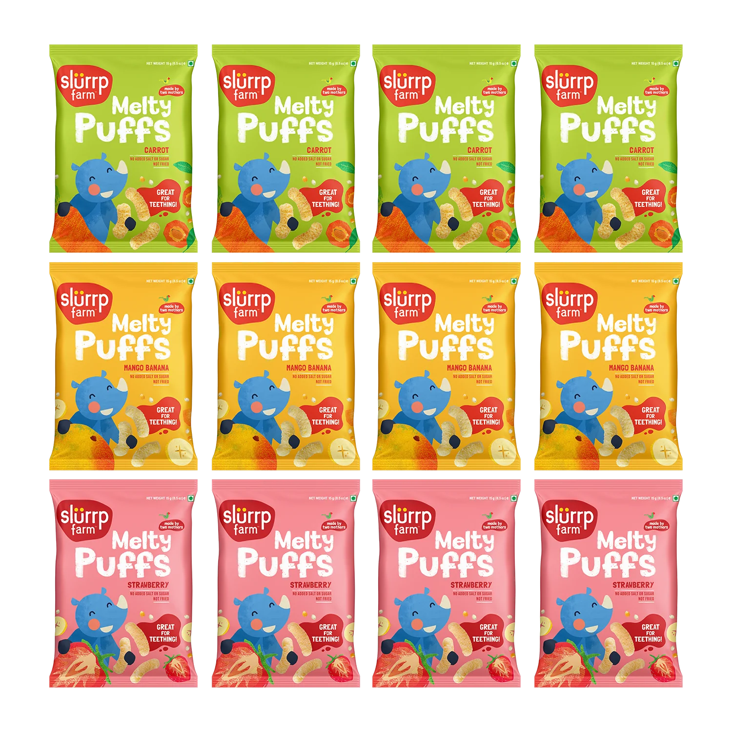 • Make snack time fun and colorful with fruits and veggies alongside Slurrp Farm products