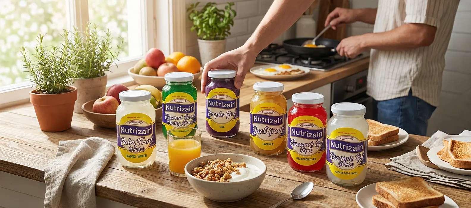 Nutrizain offers a range of colourful coconut gels and fruit toppings that bring freshness and creativity to every serving.