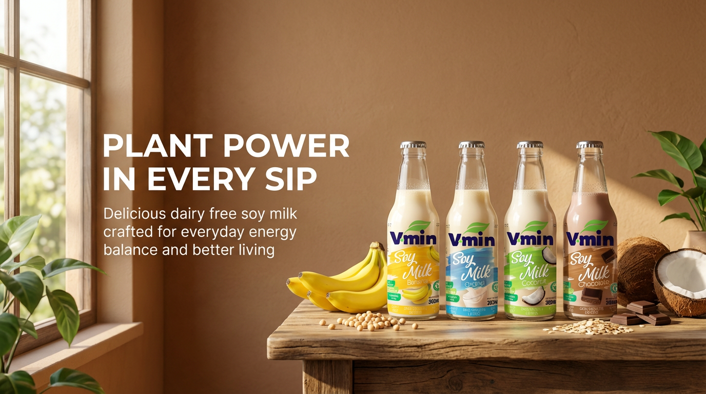V-Min Soy is a premium soy milk drink — a delicious plant-based alternative to dairy, crafted to nourish your body and delight your taste buds. Available in five flavourful variants, it brings wholesome protein, vitamins, and smooth taste to every moment — whether it’s breakfast, a snack, or post-workout refreshment.